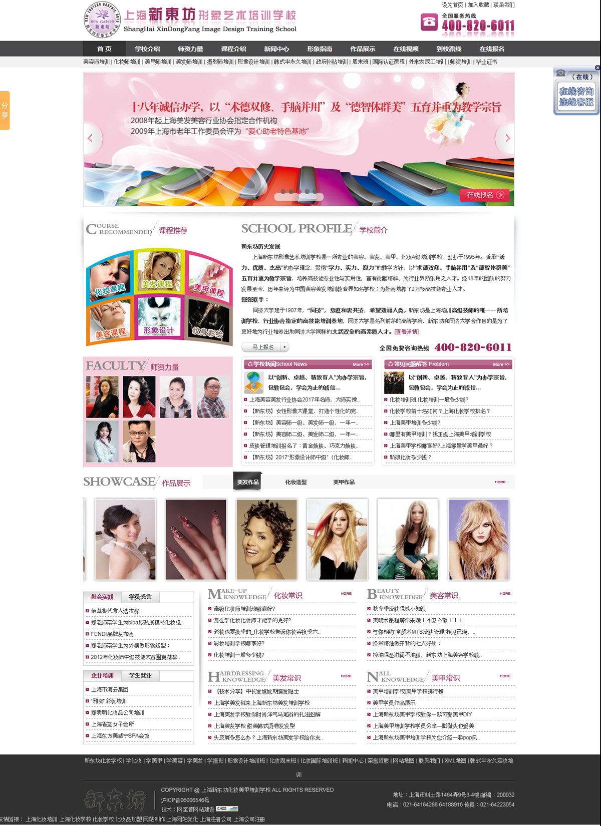 上海新東坊形象藝術(shù)培訓(xùn)學(xué)校是一所專業(yè)的美容、美發(fā)、美甲、化妝培訓(xùn)學(xué)校,創(chuàng)辦于1995年。秉承“活力、優(yōu)質(zhì)、杰出”的辦學(xué)理念,貫徹“學(xué)力、實力、愿力”的教學(xué)方針,以“術(shù)德雙修、手腦并用”及“德智體群美”五育并重為教學(xué)宗旨,培養(yǎng)高技能專業(yè)性與實用性,富有貢獻精神、為行業(yè)界所樂用之人才。經(jīng)18年的團隊的努力發(fā)展至今,歷年來已成為中國美容美發(fā)培訓(xùn)教育界優(yōu)秀學(xué)校。自創(chuàng)辦以來吸引了全國及香港特區(qū)、臺灣地區(qū)以及日本、韓國、新加坡、澳大利亞、新西蘭、挪威等各國的莘莘學(xué)子前來就學(xué)。學(xué)校本著以人為本的多元化教學(xué)模式,為社會培養(yǎng)了一批又一批的專業(yè)人才,也為社會的再就業(yè)工程做出了奉獻,深受社會各界的好評。