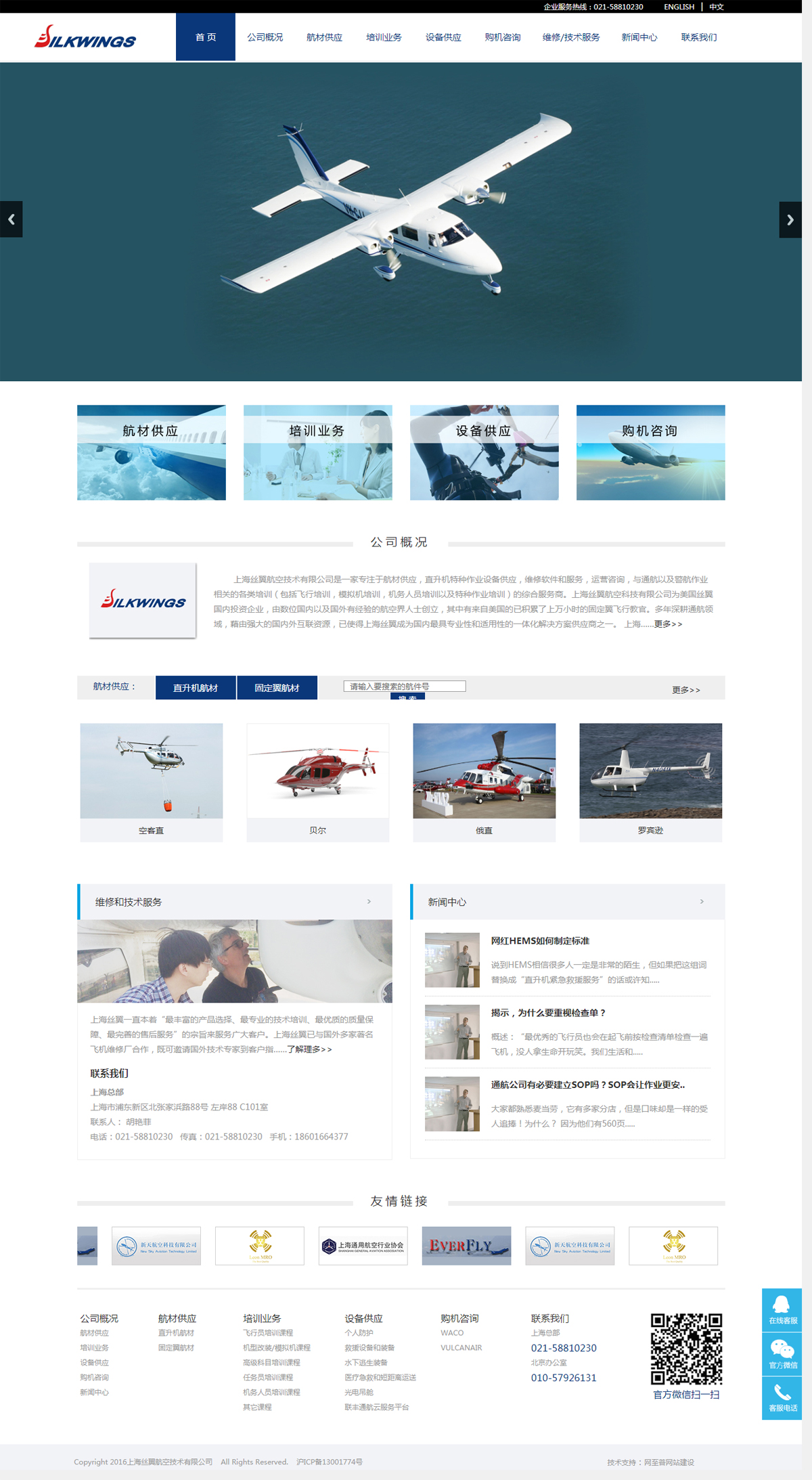上海絲翼航空技術(shù)有限公司是一家專注于航材供應(yīng),直升機(jī)特種作業(yè)設(shè)備供應(yīng),維修軟件和服務(wù),運(yùn)營咨詢,與通航以及警航作業(yè)相關(guān)的各類培訓(xùn)(包括飛行培訓(xùn),模擬機(jī)培訓(xùn),機(jī)務(wù)人員培訓(xùn)以及特種作業(yè)培訓(xùn))的綜合服務(wù)商。